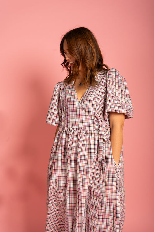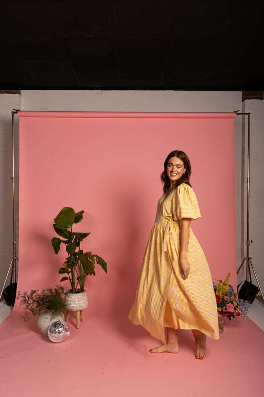 Ava Wrap Dress - Yellow Gingham (Size M)
