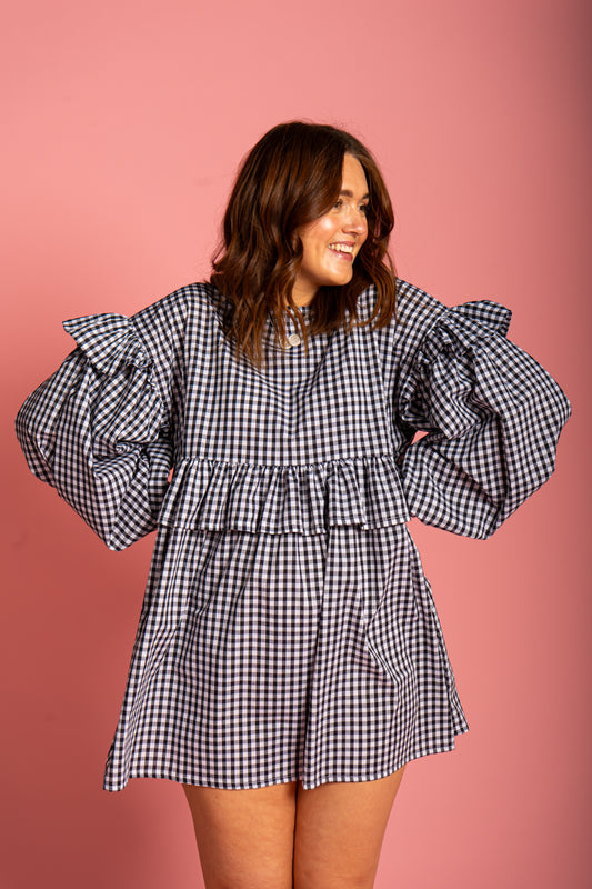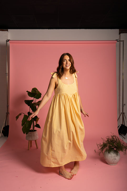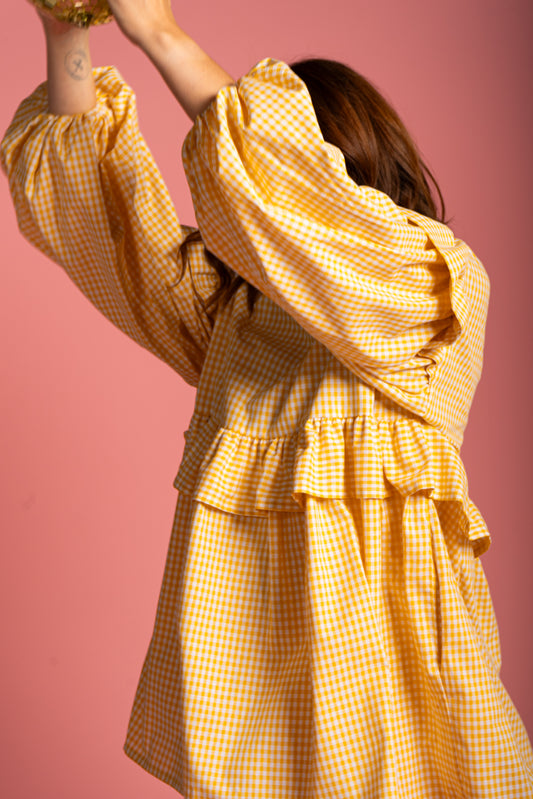 Sienna Frill Dress - Yellow Gingham (Size M)