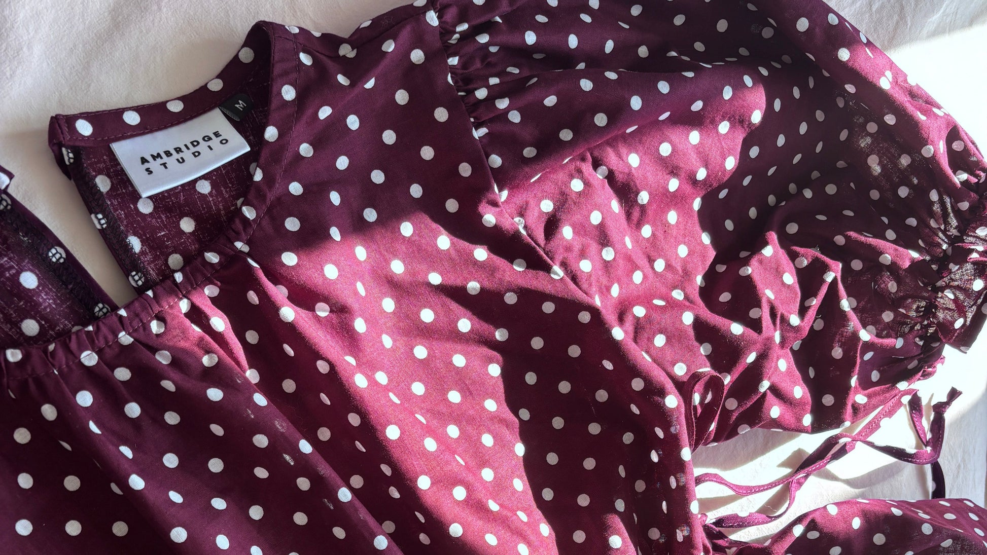 Crafted from limited-edition 100% cotton, the Burgundy Polka Dot Rose Top is truly one of a kind - with fabric available for just 10 pieces only.